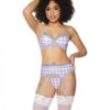 Crystal Pink Longline Bra, Garter Belt & Panty .Underwire cutaway cups. Boning with satin casings.Eyelash lace details. Hook & eye back closure.Adjustable waist. Includes matching adjustable panty.Gold hardware.Eyelash Lace/Mesh.Small. Weight: 100lb – 120lb. Bust: 34in. – 36in. Waist: 26in. – 28in. Hip: 36in. – 38in. Cup: B. Dress: 4-6.