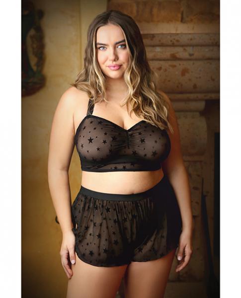 Flirty Star Printed Opaque Mesh Halter Top. Satin Halter Ties. Sweetheart Neckline.Matching Shortie.Materials:95% Polyester, 5% Spandex.Washing Instructions: Hand wash separately in cold water. Do not bleach. Flat dry.3X/4X. Size: 20-24. Cup: DD/E. Molded Cup: DD/F. Bust: 48in.-52in. Waist: 40in.-44in. Hip: 50in.-56in. Weight: 225-280lbs.