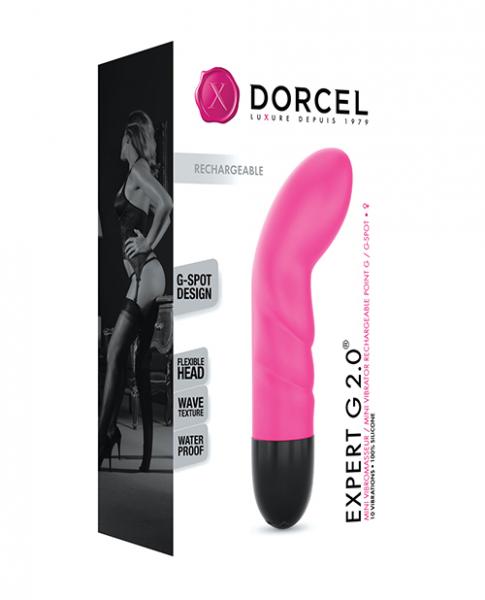 The vibrator Expert G 2.0 from Dorcel, with its unique design dedicated to the G-Spot stimulation is the perfect partner for giving an intense pleasure. Its ergonomic shape fits your anatomy and its texture surface will offer you more sensations.USB rechargeable.Length: 6.5 inches . Insertable 4.75 inches.10 vibration modes.Waterproof.Composition : 100% silicone.