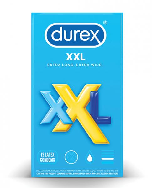 Durex XXL condoms, pack of 12. Extra Long, Extra Wide. Straight Shaft .Nominal Width: 64mm