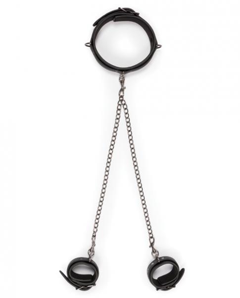 Bind your partner's ankles and neck together with this beautiful collar with ankle cuffs and enjoy the feeling of control! They are made of faux leather, which gives them a luxurious look. Both the collar and cuffs are adjustable, so they will surely fit. With this collar you will definitely experience excting and sexy SM play.