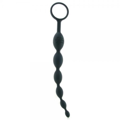 Fifty Shades of Grey Pleasure Intensified Anal Beads. Enjoy more intense orgasms than you ever dreamed possible with the help of these strong, smooth anal beads. Indulge newly discovered erogenous zones and get Fifty Shades more pleasure by trying Christian's tip of removing mid-orgasm for heightened climax. I examine them with fascinated horror. All of these, inside me… there! I had no idea. 'They have quite an effect if you pull them out mid-orgasm,' he adds matter-of-factly. 'This is for me?' I whisper. 'For you.' He nods slowly. – Anastasia Steele and Christian Grey. <br /><br />During anal play, slip these gently tapered beads inside the nerve-rich erogenous zone for heightened arousal and improved sexual response. When removed at the point of climax, the gentle curves of the beads enhance your orgasmic contractions, extending the length, and increasing the intensity, of your orgasmic pleasure. Both men and women revel in the intensified pleasure that comes with wearing these Thai beads. The unisex design works as a prostate massager when worn by him, and lavishes additional sensations on her vagina when she wears them, as well as providing extra texture for her partner during sex. Safety is ensured in the form of a finger loop at the base of the beads, preventing travel during wear and making it easy to thrust, twist and play with the beads to improve the quality of your stimulation. Use with lashings of water-based lube for maximum sensation during wear. Due to the silicone composition, you should not use these beads with a silicone lube. <br /><br />Part of the Fifty Shades of Grey The Official Pleasure Collection approved by author E L James. Supplied with a Fifty Shades of Grey storage bag, Pleasure Intensified beads are the ideal erotic gift for fans of the trilogy. Length: 10 inches. Insertable Length: 7.25 inches. Circumference: 3 inches. Base type: Finger Loop. Material: Silicone. Flexibility: Flexible. Waterproof: Submersible. Contains latex: No. Contains phthalates: No.