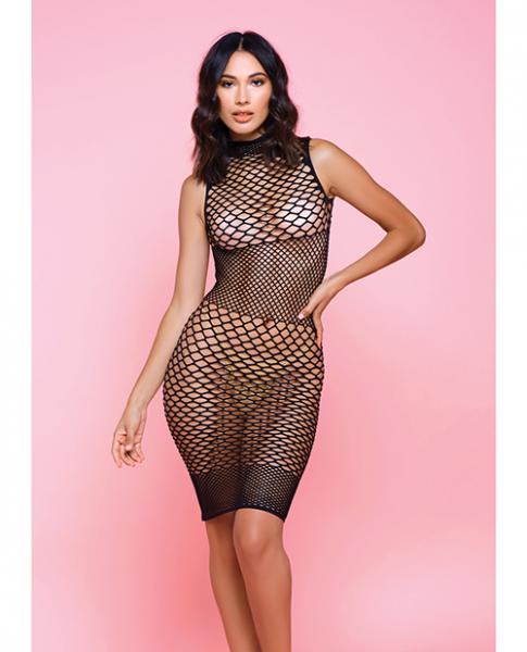 Midi fishnet seamless dress with mock neck. From iCollection. 92% Nylon 8% Spandex. One Size. Size: 2-14. Bust: 32in.-38in. Waist: 25in.-31in. Hip: 34in.-40in.