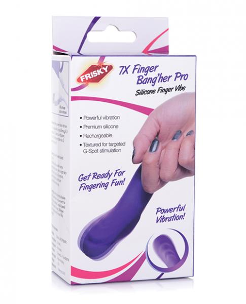 This Bang'her curved silicone sleeve helps you reach deeper and please with authority! Designed to give your finger more girth, added texture, and powerful vibrations to enhance your finger banging technique. The textured tip and stimulating ridges give your finger a blissful fill for your partner to squeeze on as you finger them!Give your partner a good buzz with 3 speeds and 7 functions of vibrations – flip through each setting and see what works best for your partner with the on-board power button. Point your new powerful finger towards your lovers favorite spots with ease!The premium silicone material velvety, plush, and phthalate free for a high quality body safe experience. Compatible with water based lubricants only, and designed with IPX7 waterproofing for shower friendly play and ease of cleaning after use.Rechargeable via included USB charging cable.Measurements: Overall length 4.7 inches, insertable length 3 inches, widest insertable width 1.5 inches, finger ring diameter 0.6 inches, finger sleeve opening diameter 0.6 inches, finger sleeve depth 0.9 inchesMaterials: Silicone, ABS Plastic