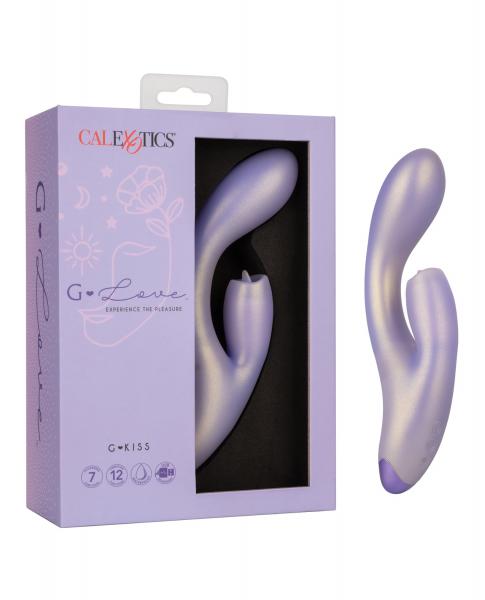 The gorgeous G-Love G-Kiss is a dual stimulating massager with vibrating shaft and flickering tongue-like teaser. Love yourself just right with the flexible G shaft, 7 independent functions of flickering action and 12 independent functions of vibrations. The flickering teaser tip and sensually curved shaft are perfect for teasing internal and external sweet spots. For an ultra smooth surface and flexible body, the curved stimulator and massager are covered in a shimmering SiliconeThis silky smooth vibrator is packed with 12 functions of vibration and 7 independent functions of flickering stimulation made just for you. The easy-touch control buttons let you effortlessly flicker through each function of vibration, while increasing or decreasing the function intensity.Whether you're taking a dip with a lover or indulging in a steamy solo session, look forward to up to 55 minutes of waterproof vibration. Recharge pleasure and get back to playtime in only 2 hours with the provided USB cable. The flexible massager is made from a hygienically superior silicone. This body safe material is unscented and phthalate free to keep your most sensitive spots happy and healthy.7.5" x 1.5" / 19cm x 3.75cm (Overall).5.25" x 1.25" / 13.25cm x 3.25cm (Shaft).1.75" x 1" / 4.5cm x 2.5cm (Stimulator).One Year Warranty.