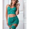 A one piece mix of garter corset and teddy plays the perfect silhouette with strappy details and ruffled lace to give your curves a little love. Includes stockings.Hand wash separately in cold water/ Do not bleach/ Line dryFabric : 88% Polyamide 12% Spandex