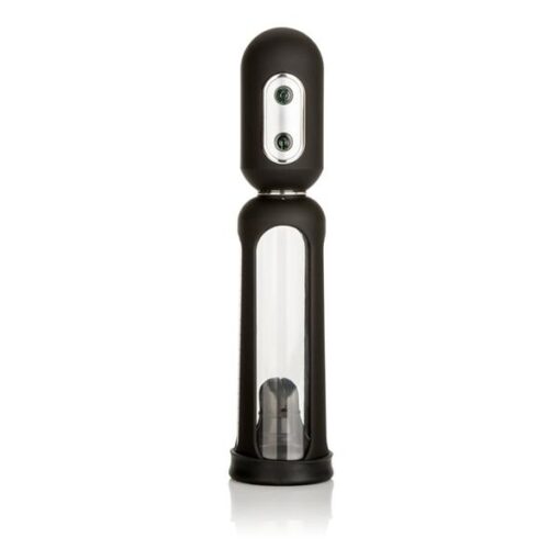The Get Hard Power Pump is a high tech, fully automatic pump with easy to use pressure control. Totally self contained wireless design with 3 ascending levels of suction power. Features an auto start button with quick air release valve and flanged base for secure seal. Universal measurements on cylinder to track results. Made from PS cylinger, ABS plastic buttons, ABS plastic with polyurethane PU Cote handle, case, Silicone sleeve, ABS plastic with silver plating/metallic plating decor. Requires 3 AAA batteries, not included. 7.5 inches by 2.25 inches. From Cal Exotics.