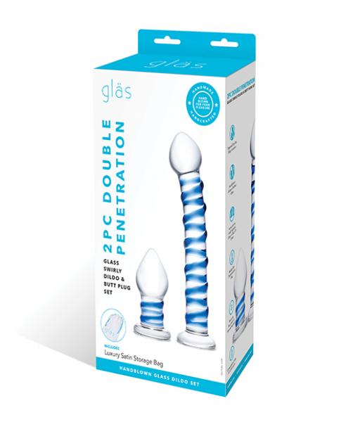 Glas 2 Pc Double Penetration Glass Swirly Dildo & Buttplug Set – Clear