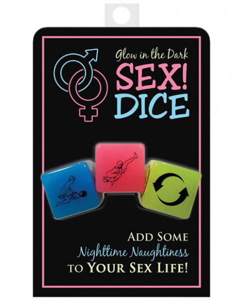 Add some naughtiness to your sex life. Glow in the Dark set of 3 sex dice. From Kheper Games.