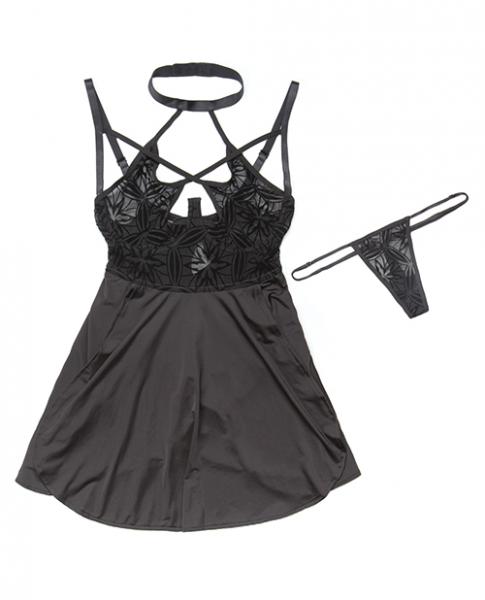 Halter Neck Underwire Cup Babydoll & G-String Black 3X/4X
