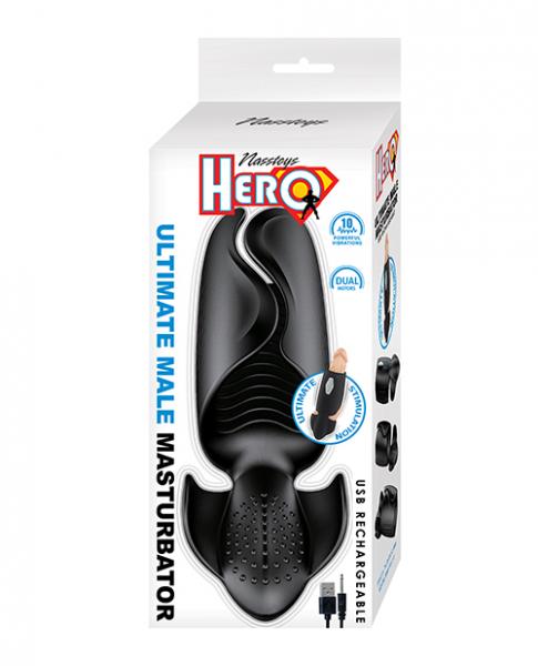 Hero Ultimate Male Masturbator from Nasstoys.Stimulates the shaft & scrotum with dual motor vibration.Ultra quiet vibratingWater resistantPhthalates freeRoHS compliantMaterials: Silicone / ABSSize: Length – 6.5?, Diameter – 2.75?Voltage – 3.7VRechargeableCharging time: 120 mins.Usage time: 60 mins.