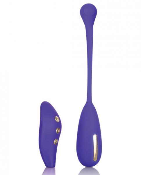 Impulse Intimate E-Stimulator Remote Kegel Exerciser use the zinc-alloy stimulator pads to automatically tone and strengthen the pelvic muscles responsible for arousal and climax. Our tingling kegel weight has 7 vibration functions, 5 electro-stim pads & a flexible retrieval cord. Tone, strengthen and tighten pelvic floor muscles while you or your lover use to handy remote to cycle through powerful sensations from up to 32.5' (10 m) away. Electro-Stimulation technology uses electric pulses to automatically strengthen and tone pelvic floor muscles responsible for intense orgasms. The strategically placed zinc alloy electro-stim pads gently pulse to intensify sensation and climax. Embrace full-body stimulation with this silky vibrator's 7 functions of vibration and 5 independently controlled e-stim functions. The sleek 3 button control pad lets you enjoy frustration-free control. Gently escalate stimulation and personalize powerful pleasure with 5 independent electro pulse functions. Measurements: 3" X 1.25" Kegel. From Calexotics.