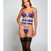 There's no doubt that you'll grow your babe's affection in this sexy plus size bra set featuring sheer lace underwire cups with a hook and eye front closure, a strappy chest detail, adjustable spaghetti straps, a matching waist cincher with piping detail, removable adjustable garter straps, and matching g-string panty. (Thigh highs not included.) FABRIC: 90% Polyester, 10% Spandex. Large. Size: 10-14. Bust: 36in.-38in. Waist: 29in.-31in. Hip: 38in.-40in.