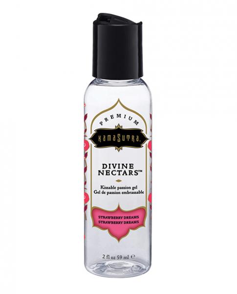 <p>Kama Sutra's Divine Nectars is a water-based, flavored body glide. Use it anywhere on the body. Adds the perfect amount of slip and glide to any intimate activity with a splash of juicy, kissable flavor! Drizzle all over the body…anywhere you want to kiss or be kissed. Rub it, kiss it, lick it…. The possibilities are endless. Strawberry Dreams – A burst of succulent strawberry nectar.</p>