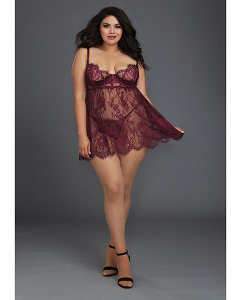Lace Babydoll Underwire Cups & Thong Purple 3X
