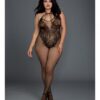 Lace and Fishnet Pantyhose with Knitted High Waist Panty and Thigh High Design from the Dreamgirl international lingerie line. Ladies plus size, one size queen. Sizes 16 to 20. Waist 36 inches to 44 inches. Hips 42 inches to 56 inches. Inseam 36.5 inches. Rise 9 inches to 9.5 inches. Weight 165 pounds to 275 pounds.