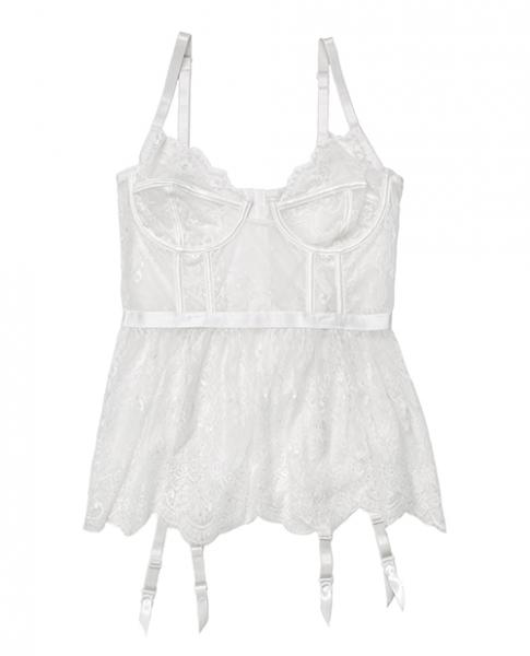 Lace, Powernet Underwire Cups Peplum Bustier White Md