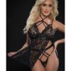 Lace Teddy with Garter & Stockings . Blackout Collection from Gworld.One Size, Bust: 30in.-36in. A-C cup. Weight: 110lb-165lb. Waist 24in.-29in. Hip: 34in.-39in. Size: 0-10.