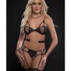 Meet the sexy side of sweet in this flirty bra set featuring lace peek-a-boo cups with rhinestone accents, halter ties, a ruffled lace underbust with a hook and eye back closure, a matching strappy panty with criss-cross open crotch, a g-string cut back, and matching lace leg garters. (Jewelry not included.)FABRIC: 88% Polyamide 12% Spandex.One Size, Bust: 30in.-36in. A-C cup. Weight: 110lb-165lb. Waist 24in.-29in. Hip: 34in.-39in. Size: 0-10.