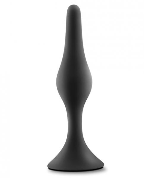 The Luxe Beginner Plug Medium is designed to please and tease your backdoor. It is the perfect toy for safe and gentle anal play. This butt plug features a tapered tip for easy insertion and a tight neck for gentle pressure and extended wear. Perfect alone or with a lover, for new or experienced players alike! Made of satin smooth, platinum cured silicone, this toy is body safe and easy to clean. For the best experience, use with your favorite, high quality water based lubricant. Color Black. Material Silicone. Insertion length 3.5 inches. Length 4.25 inches, width 1 inch.