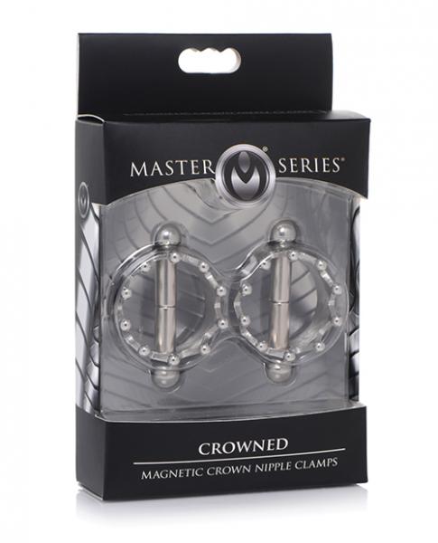 These nipple clamps are fit for royalty! The powerful magnetic clamps of this regal couple are designed to pinch and squeeze your nipples to support the shining metal crowns, giving your nipples a regal BDSM glimmer.The intense magnetic clamps increase your nipple sensitivity, perfect for use during foreplay or to decorate your partners tits as you tie them up in your favorite restraints! Versatile and compatible with all kinds of naughty acts, these Crowned Nipple Clamps are made with nickel free stainless steel so you can enjoy with confidence.Combine these clamps with lingerie or your favorite set of leathers, perfect for BDSM players of every level!Measurements: Crown diameter 1.4 inches, crown height 0.7 inches, magnetic bar diameter 0.2 inches.Materials: Nickel free stainless steel and rubber.