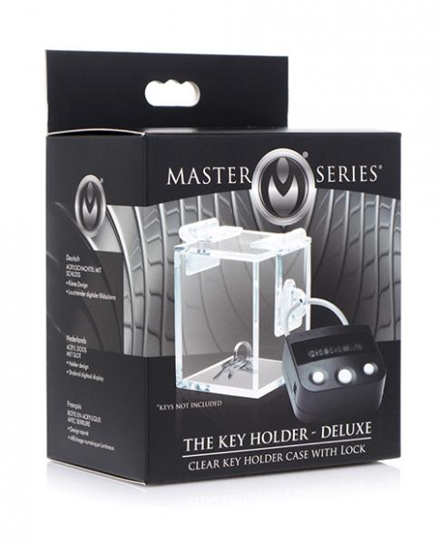 MS The Key Holder Deluxe Clear Key Holder Case with Lock This transparent case puts your power dynamic on display! Created for those who dabble in extended BDSM scenes involving chastity and key holding – the see through design and countdown timer lock sets the stage for a long-term exchange in power and trust for kinky couples and BDSM enthusiasts. Lock up your sub in a chastity device or a pair of restraints and lock up the keys until they earn their freedom.Explore a more decisive and extreme form of play with the included countdown lock – the left button sets the hour duration while the right button sets the minute duration. Once you press the middle button a 5 second countdown begins! During this countdown, if you press the middle button you can set a new time duration. However, once that countdown is over the lock is locked until the countdown reaches zero! The only other way to unlock this devious lock is to cut it, so make sure you are 100% sure about locking a key in this case.The lock can be programmed to up to 99 hours and 59 minutes and is rechargeable with the included recharging cable. The glowing display allows for use in the dark as well!Measurements: Case dimensions: 1.9 inches in length, 1.9 inches in width, 2.3 inches in height. Lock dimensions: 1.5 inches in width, 2.8 inches in height.Materials: AcrylicColor: TransparentNote: Lock cannot be unlocked until the timer reaches 00.00.00, or if the lock is cut. Maximum lock time is 99 hours 59 minutes.