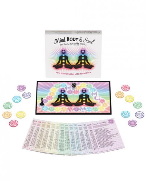 Achieve enlightenment by playing Mind. Body & Soul. As you move around the game board, you and your partner ask each other questions designed to open up your chakras. There are 20 questions per card and two sets of cards per the seven chakras to total 240 chakra healing questions. You win by aligning all 7 of your chakras and your partner provides an intimate reward to align your sacral and heart chakras. Includes: A game board, 14 chakra cards, 14 chakra coins, 2 game markers, a die, and game rules. Questions are gender neutral, so this game works for any couple.