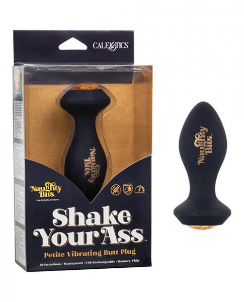 Shake and shimmy to the rhythmic vibrations of the Naughty Bits Shake Your Ass Petite Vibrating Butt Plug. This bold probe has a contoured design and powerful vibe motor meant to flex with your movements while delivering knee-shaking stimulation with the touch of the gemstone button.Indulge in personalized pleasure while the sleek probe pulsates with 10 vivacious vibration, passionate pulsation and erotic escalation. To ensure everything the exhilarating world of anal play has to offer, we have created a gently tapered probe for the ultimate in comfort and stimulation. The flexible shape and flanged base allows for easy insertion and removal, while the intense motor make you shudder with pleasure.Whether you're taking a dip with a lover or indulging in a steamy solo session, get playful with up to 2 hours of waterproof vibrations. Recharge pleasure and get back to playtime in only 2 hours with the provided USB cable.The Naughty Bits collection is made to stand out in any nightstand with eye-catching designs and orgasmic features. The ultra plush silicone and dazzling gemstone button of this gorgeous anal probe will make even the most stylish lover smiling before and after.One Year Warranty.