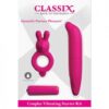 Get the party started anytime, anywhere with this incredible Neon Vibrating Couples Kit. Perfect for first timers, this kit features a silicone mini rabbit vibe and a super stretchy vibrating cock ring with a convenient removal bullet. With the push of a button the bunny's flickering ears tickle and tease sensitive erogenous zones with pinpoint stimulation, while the vibrating cock ring delivers a thrilling buzz for both partners. Phthalate free and body safe, this kit will boost your performance and pleasure! Batteries Included. From Pipedream.
