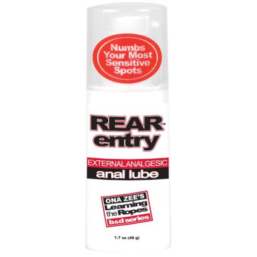 Anal penetration should be exciting and sensual, not uncomfortable. That is why Doc Johnson offers Ona Zee's Rear Entry external anal analgesic, to desensitize tender rectal tissues and prepare them for what lies ahead. Ona Zee's Rear Entry Anal Lube is available in two sizes: 1.7 ounces and 3.4 ounces. Each sold separately. <br /><br />Formulated to slightly numb the external area around your rectum so you can focus on the pleasure without any interruptions. Desensitizing anal lubricant. Ona Zee's Learning the Ropes B&D series. Rear Entry Anal Lube from Doc Johnson Novelties Great American Toy Company Made in the USA.