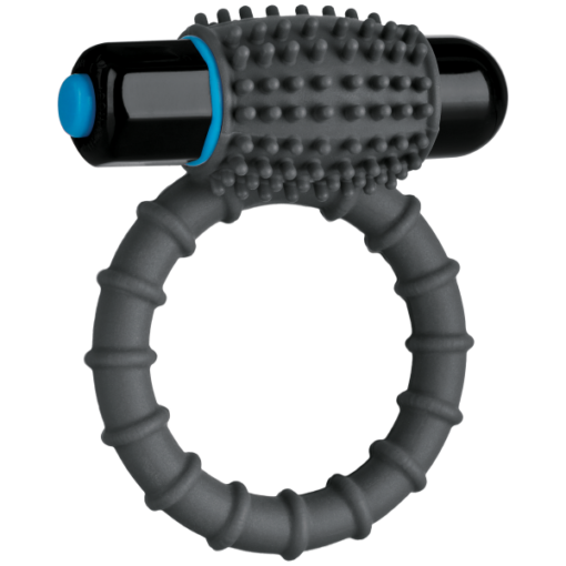 This powerful Vibrating C-Ring is made for pleasuring you and your partner featuring a textured yet soft, stretchable silicone ring for easy use and a removable bullet in a nubby sleeve for comfortable stimulation. The push button waterproof bullet offers 10 unique functions. Wear the ring atop the shaft for targeted clitoral stimulation or under the shaft or testicles for self stimulation. Phthalate free. Batteries included. From Doc Johnson.