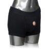 Discreet 2-panel design to accommodate dual penetration. Reinforced O-ring stretches to accommodate most packers, dongs or probes. Soft, stretchy and comfortable. Comfortable soft lining. Internal strap to secure your packer in place (packer not included). Internal pockets to add a favorite stimulator (not included). Washable. 95% Cotton, 5% Spandex.