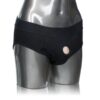 Discreet 2 panel design to accommodate dual penetration. Reinforced O-ring stretches to accommodate most packers, dongs or probes. Soft, stretchy and comfortable. Comfortable soft lining. Internal strap to secure your packer in place. Packer not included. Internal pockets to add a favorite stimulator, not included. Washable. 95% Cotton, 5% Spandex.
