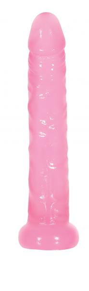 Adam & Eve Pink Jelly Slim Dildo. Slender, flexible and seductive! It's 6 inches long and 1 inch wide for easy vaginal play and anal exploration. Dip it into your favorite love zone! Wide base makes it easier to hold onto. Veined details pop out and stimulate! Molded from super flexible jelly material. Realistic looking! Perfect for anal beginners, be sure to use with water-based lube. Insertable to 5.5 inches, 1 inch wide. Hot phallus shape. Vein details stimulate and hold onto lube. Super flexible Thermoplastic Rubber TPR material. Waterproof, non-vibrating realistic dildo. Wide base for easy control.