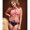 Play Whiskey In A Teacup Collared Top, Bolo Tie, Garter Belt & Booty Short Red/white 3x/4x