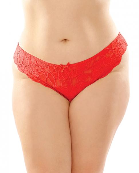 Poppy Crotchless Floral Lace Panty Red Qn