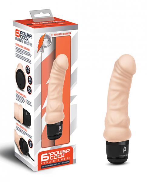 Unleash your fantasies with the Powercock 6” Realistic Vibrator. Made of silky-smooth silicone, this Powercock features a lifelike curve that reaches deep to target pleasure zones with its ultra-powerful vibrations, which come in three speeds and four variations. Simply power up the Powercock with the simple press of a button. All along the shaft, veins and folds enhance the sensation of every thrust with a lifelike feel that feels even better than the real thing.Every inch of the Powercock 6” Realistic Vibrator delivers the ultimate stimulation with ridges and veins that enhance the feel of the silky-smooth silicone shaft.Safety-stop collar.Textured sure-grip base.