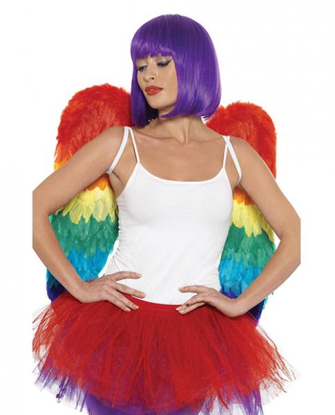 Feather Wings, Rainbow, 60cm x 60cm e or approximately 23.62 inches by 23.62 inches. Multi colored Rainbow Feather Wings great for Festivals and other Themes.