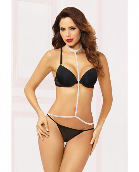 Rhinestone belly chain with attached choker. From Seven Til Midnight. One Size. Size: 2-12 Cup: A-D. Bust: 32in.-38in. Waist: 24in.-32in. Hip: 34in.-40in.