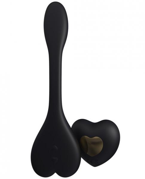 Our remote controlled couple's massager intensifies sexual sensations for you and your partner. This soft, bendable and body shape adapting toy is internally worn during lovemaking to create and enjoy more intense climaxes. Discover the endless possibilities of pleasure with Natya. This ultimate multipurpose toy features a unique bendable center that allows you to find your perfect fit, alone or with your partner. The vibrating heart remote will soothe and stimulate your senses. Use each individually or in sync. Size 6.79 inches by 2.08 inches by 0.98 inch. Materials FDA approved body safe silicone. From Rhythm by Kama Sutra. Color Black.