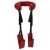 The Saffron Hog Tie and Cuff Set binds your wrists and ankles, but frees your wildest fantasies.A strong X-shaped hog tie bar with firmly welded O-Rings placed at each end is ready to rule you when connected to four faux leather, lightly padded adjustable cuffs in the Saffron collection's signature red and black.With heavy duty hardware and firmly fitted cuffs, there will be no wriggling out of this one! Each sturdy connection point can take a wrist, ankle, or combination of the two to properly truss up you or your little plaything. The cuffs can also be clipped together or attached to other bondage gear to maximize your restraint play. Mix and match with other Saffron collection products for even more forbidden fun!Adjustable Cuffs Fit Most Users.Swivel Snap Clips Make Any Position Possible.Vegan/Vegetarian-Friendly Faux Leather.Nickel-Free Metal.Limited Lifetime Warranty.Materials: Stainless Steel, PU, Aluminum.Includes:One X-Shaped Hog Tie Bar with O-Rings in Matte Black 10.25" (26.04cm) measured end-to-end across center.Four Adjustable Faux Leather Cuffs in Saffron and Black 10" (25.4cm).About the Saffron collection:Saffron is a thoughtfully-crafted line of couples-friendly vegan products designed for players at every level of interest and experience. Created with beauty, comfort, and safety in mind, Saffron is perfect for anyone who desires to explore a new kind of give and take in the bedroom.