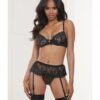 Ultra-sexy halter lace underwire bra and panty set. High-neck halter neck with unlined darted seamed cups. Fully adjustable stretch straps are removable.3 column, 2 row hook and eye closure.Matching low rise G-string with cotton gusset included.Hook & eye garter belt with attached adjustable straps.Stretch mesh and lace.Thigh highs sold separately.Content: Body: 90% Polyester, 10% Elastane.Care: Hand wash, line dry.Medium. Size: 6-10. Cup B/C. Bust: 34in.-36in. Waist: 26in.-28in. Hip 36in.-38in.