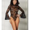Scalloped Embroidery Shelf Bra with uplifting underwire support, adjustable straps and back. Please note shown with g-string panty, not included. Color Black. Bra size 32.