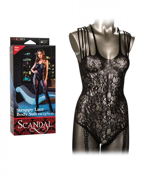 Watch as your lover melts at the sight of you in the Scandal® Plus Size Strappy Lace Bodysuit, a lace full body lingerie piece created with a sexy lace pattern and strappy neckline to sensually accentuate your curves up to size 3X. The soft stretchy lace and bold crotch-less design are perfect for hours of passion pleasure play. Surrender yourself to your partner's every whim and indulge in unrestricted pleasure with the sinfully crotchless design. Give into primal desire, inspire new passions and indulge in scandalous pleasure with this seductive full-body ensemble. MaterialsNylon, SpandexWarranty1 Year Warranty