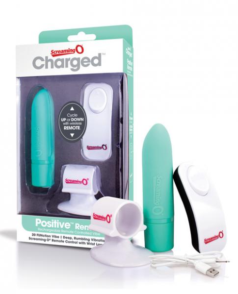 Come over the edge of ecstasy with the Charged Positive Remote, a rechargeable vibrator powered by the most intense Screaming O motor available. With twenty FUNctions of deep, rumbling vibration, the Charged Positive can be controlled by the button on-device, or via wireless remote control which works up to 40 feet away. This unique remote also allows you to easily toggle back and forth through the settings and includes a handy wrist strap for active bedroom play. The Charged Positive Remote is certified body-safe and made from ABS plastic, with a temperature-stable Lithium Polymer battery that works for over 60 minutes per charge. You can even use your Charged Positive Remote charging stand as a finger cradle to plus-up your solo play or give your partner a positively sensual massage. From Screaming O.