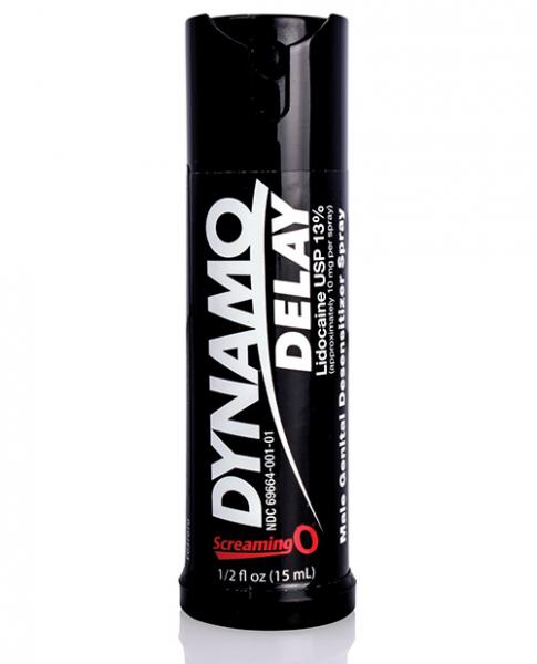Enjoy longer lasting lovemaking with new and improved Dynamo Delay Black Label Edition, a deluxe desensitizing spray designed to delay male orgasm and prevent premature ejaculation. <br /><br />Clinically tested to be fast acting and non-irritating, Dynamo Delay is the strongest formula of its kind available over the counter, delivering more concentrated Lidocaine in each spray to temporarily reduce skin sensation and prolong your sexual encounters. <br /><br />Dynamo Delay Black comes in a pocket sized TSA friendly bottle perfect for taking on flights and carrying discreetly on the go. If you are seeking to extend your passion and pleasure your partner, Dynamo Delay Black Label Edition is the ideal tool to cool your tool for mutually satisfying sexual encounters. From Screaming O.