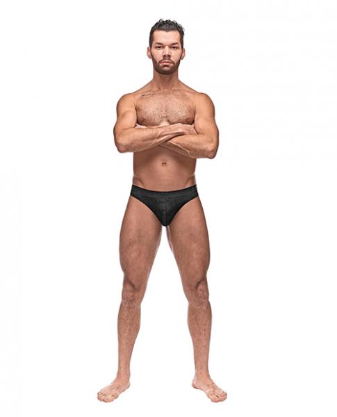 Semi Sheer Moonshine Jock by Male Power. Semi sheer lightweight fabric with a subtle embossed abstract swirl pattern. Embossed deluxe logo'd elastic waistband. S/M. Waist: 28in.-34in