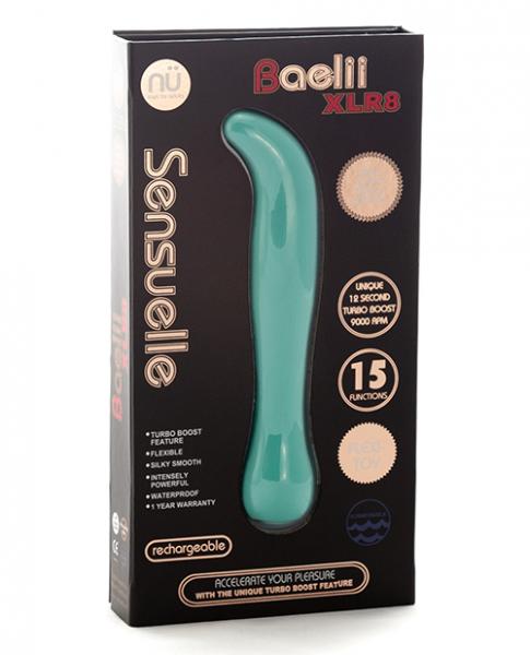 Sensuelle Baelii XLR8 G-Spot Vibe in Ultra Violet features 15 functions of deep throbbing and pulsating action. Accelerate your pleasure with 12 seconds unique Turbo Boost. Intensely powerful, this power packed G-Spot vibe is also flexible so you can adjust it to your unique shape.Waterproof: 100% SubmersibleUSB Rechargeable from any USB Port1-Year Warranty