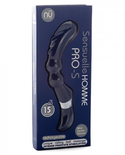Sensuelle Homme Pro-S Prostate Massager features 15 intense vibrations and pulsations for the ultimate in prostate stimulation. The tip of the massager is a ball-shaped stimulator with a 3-speed up and down motion that can be used simultaneously with the 15 vibration modes to satisfy your deepest Sensuelle desires.Ultra smooth, silky touch to heighten your pleasure. USB Rechargeable. Multi-function control touch. Water resistant for cleaning purposes. 1 year factory warranty.