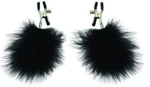 Sex and Mischief Feathered Nipple Clamps: These Feathered Nipple Clamps feature luxuriously soft feathers that tickle the skin as they sway. This product is available in a sophisticated shade of black. This product is adjustable.